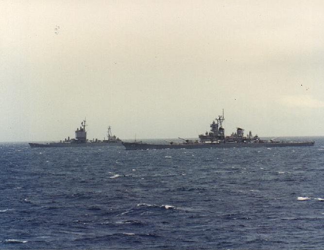 Image: Missouri (BB-63) in company with the Long Beach (CGN-9) and others just prior to RIMPAC '88. Retrieved from navysource.org,courtesy of Larry Lee, probably in public domain as taked for an US servicemen. http://www.navsource.org/archives/01/63h.htm