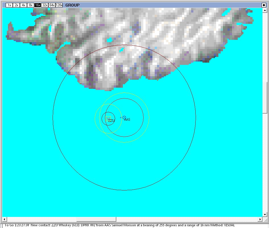 - Chg:0000 GE Surface gunnery vs submarines Missile and Gun type radio buttons were improperly greyed out (lack of missiles greyed guns, lack of guns greyed missiles), remedied. (thanks Don Thomas) Well.......most of it works. I wrote a small program with an O.H. Perry vs. a Whiskey in EC2003. In Cheat Mode, I was eventually able to get Whiskey to remain surfaced so Perry could detect it. I selected Attack and the Attack box popped up to allow a Missile Attack selection. However, there were no weapons in the Weapons Allocation box. It wasn't until Perry got into Whiskey's torpedo range that I was finally able to select a Harpoon to fire. The Harpoon did fire. Attempting the Short Range ASW allowed the Mk 46 and Harpoon to be selected. Both the Mk 46 and Harpoon did fire. Attempting Gun Attack allowed a 76mm burst to be selected, but the attack was properly cancelled as Perry's superstructure masked the 76mm from firing straight ahead. A turn to starboard opened the firing arc and the 76mm sank Whiskey. So, the radio buttons aren't greyed out, the firing arc cut-out seems to work, but the Weapons Allocation is a little off. The attachments include a .zip folder with the "SubSurf" porgram along with a game save that picks up with thw weaponless Weapons Allocation. Ah, nuts! I tested this with the .005 beta, but I'm not going to rewrite this over there now... SurfSub.zip