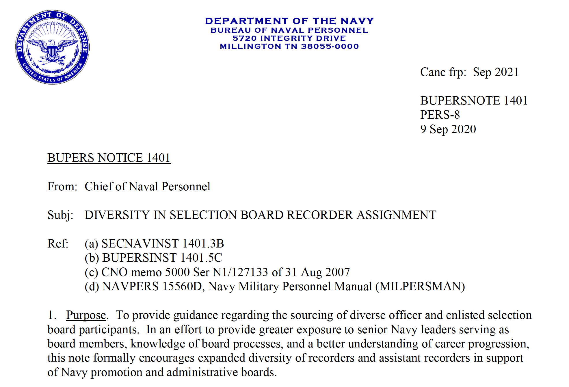 For how many years of doing DivThu, through all the name calling, attempts to doxx or cancel me and my sources, have we been told - in spite of the experiences of many here - that in no case will our Navy set up quota systems ... and then in hushed tones perhaps whisper, "Well, they'd never be stupid enough to make it official. We have goals and desires."